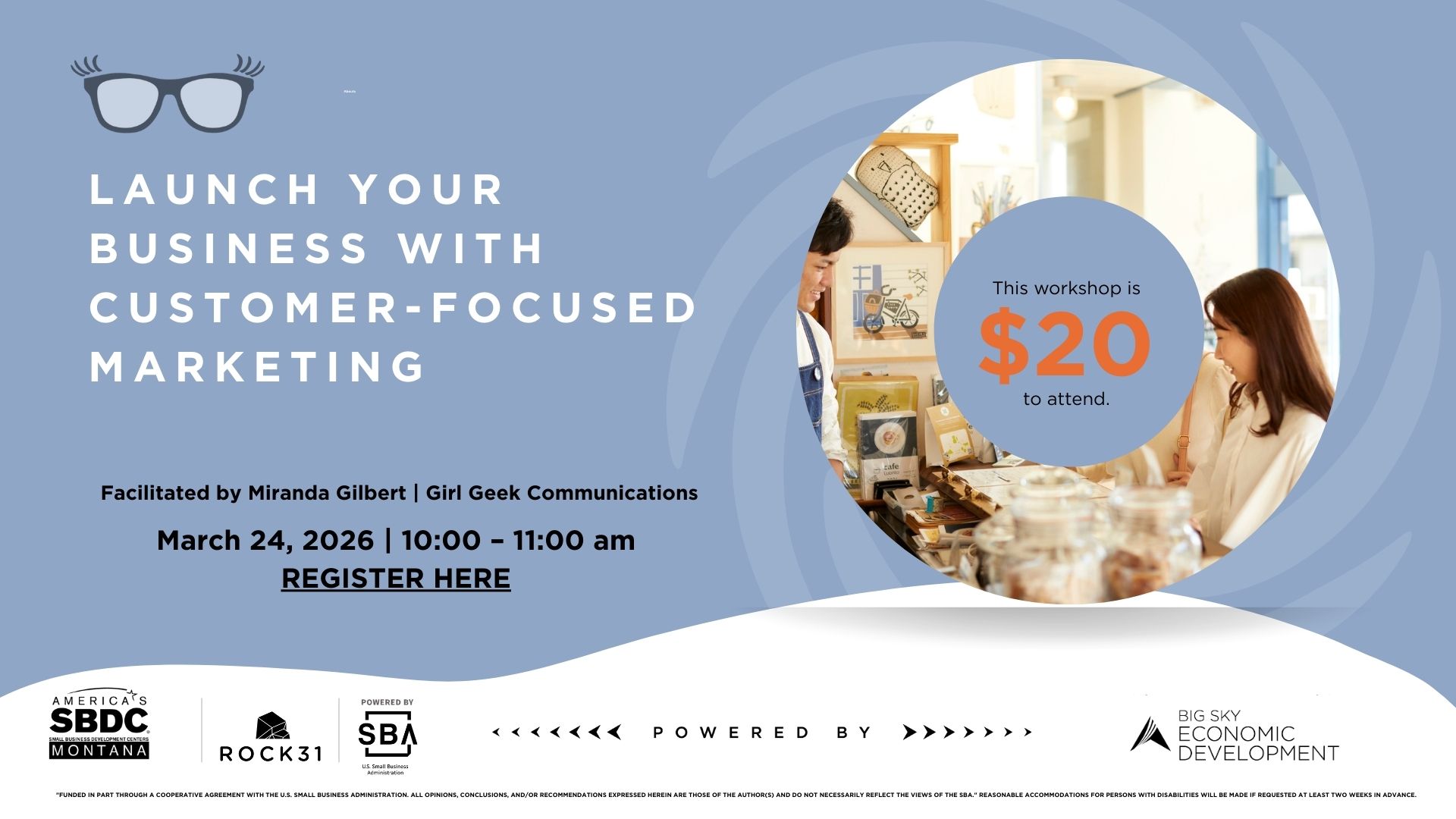 Big Sky Economic Development 201 North Broadway Ave, Billings, MT, United StatesAs a new entrepreneur, you’ll need more than good products or services to grow your business. It’s also important to have strong customer-focused marketing strategies to reach your audience and turn them into loyal… more Launch your business with Customer-focused Marketing